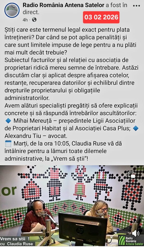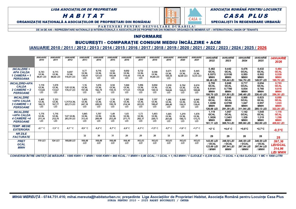 În cadrul seminariilor adresate membrilor și reprezentanților asociațiilor de proprietari, joi, 12 februarie – Online – Zoom – ora 10.00, Liga Națională a Asociațiilor de Proprietari Habitat în colaborarea cu Asociația Română pentru Locuințe Casa Plus, organizează webinarul cu tema: SACET București: situația actuală – perspective!